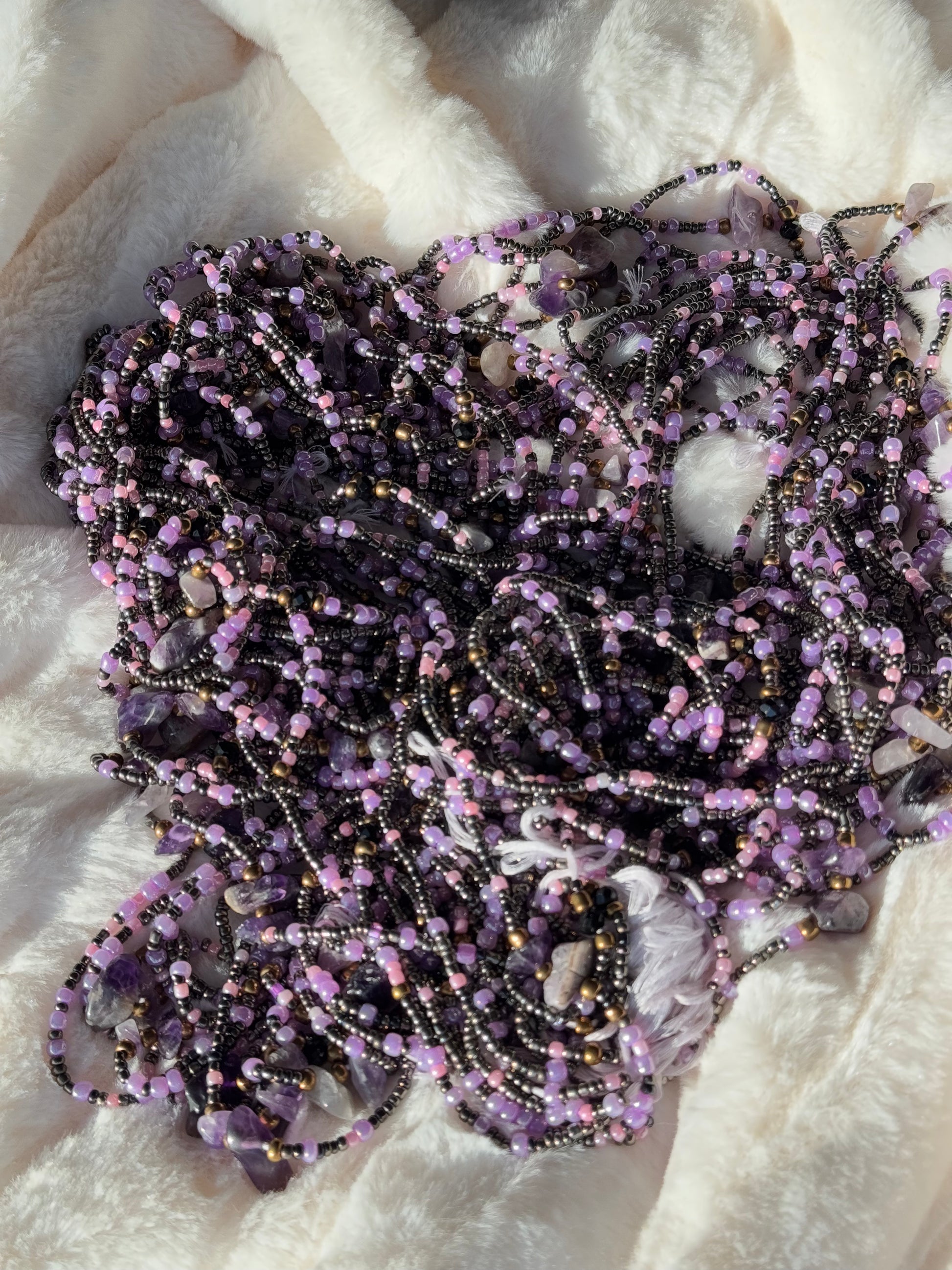 Elevate your energy and embrace your inner calm with our stunning Amethyst Waist Beads. Known for its calming and healing properties, amethyst promotes peace, balance, and spiritual growth. Each bead is carefully strung to enhance not only your natural beauty but also your well-being. Whether you're looking to channel positive vibes or simply add a touch of elegance to your style, these Amethyst Waist Beads are a perfect fit. Wear your energy!